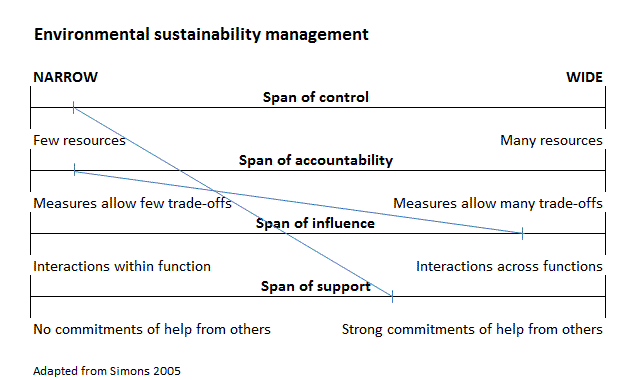 Performance measurement is based around precise measures driven by targets set in policy – tonnes of CO2 emissions, mega litres of water consumed, or tonnes of waste generated. Because the service is for the whole organisation and the whole community, there is a wide span of influence. The position is required to influence everyone to make more environmentally sustainable decisions about their work and lifestyle. The span of support varies and although all managers within the organisation should support environmental sustainability goals, not all do. The goals are often not included in the performance objectives of other functional areas and the managers will assist if they can but their functional responsibilities come first.