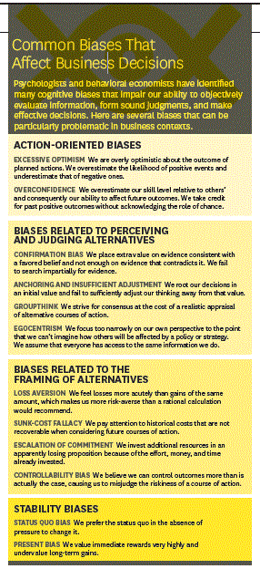 There have been a number of posts on decision making in a recent series. This post is a quick overview of further advice available from four Harvard Business Review articles in the September 2015 edition; ‘From ‘Economic Man” to behavioural Economics’ by Justin Fox; ‘Leaders as Decision Architects’ by John Beshears and Francesca Gino; ‘Fooled by Experience’ by Emre Soyer and Robin M. Hogarth; and ‘Outsmart Your Own Biases’ by Jack B. Soll, Katherine L. Milkman, and John W. Payne.