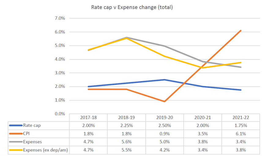 It is noteworthy that some sector experts are predicting a ‘one-off’ increase in the gap of another 4% in 2022/23 as the combined impacts of a rate cap of 1.75% and CPI greater than 6% take effect. This will rapidly increase the impact of the cap on financial sustainability.