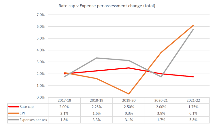 - The compounding effect of a rate cap which has consistently been set below the cost increases experienced by councils
