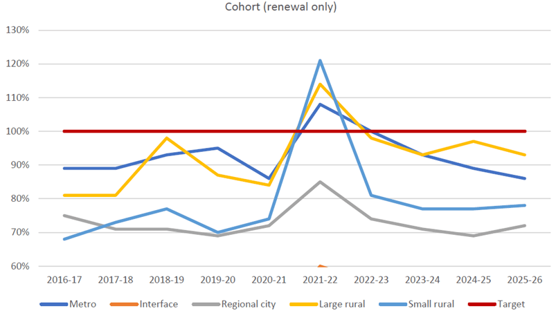 Most councils are putting a significant amount of their available capital into asset renewal but is has dropped from almost 50% of capital expenditure to 43% since the rate cap was imposed. The capital required for upgrade and expansion of assets has grown, and this expenditure is important to ensure assets remain ‘fit for purpose’. Having said that, when renewal is required it is seldom as simple as ‘like for like’ replacement because council assets have a long service life and new standards must be met. Funding for new assets is the second highest annual capital spend and reflects community demand for more services from their council.