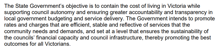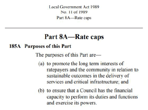 Part 8A of the Local Government Act gives the state government the powers to introduce a rate cap and the purposes ascribed to a rate cap are interesting.