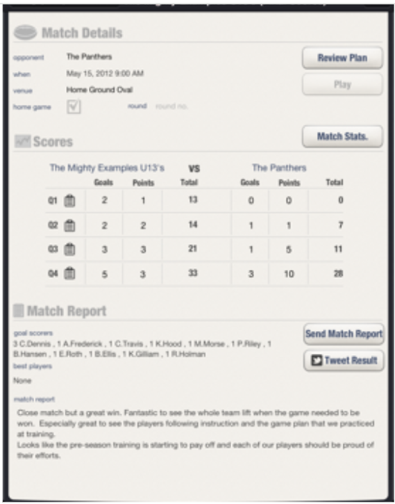 Match Statistics, Great Coach AFL – User’s Guide
