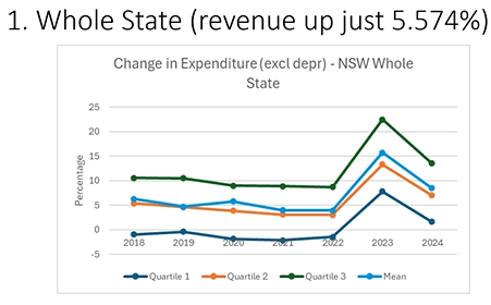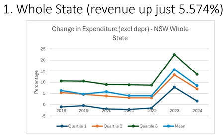 When Professor Drew looks at revenue and expenses across local government in NSW (he gives data for the whole state and then breaks it down by rural and urban councils), the extent of the problem is immediately apparent. He says the data will be the same in Victoria.
