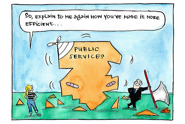 • The government is identifying the public services that will be affected by cuts, but does not appear to be guided by any underlying rationale of what services government should be providing.